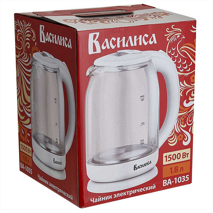Чайник электрический Василиса ВА-1035, 1,8 литра, 1500 Вт стекло, подсветка, белый: сравнение цен, характеристики, фото, актуальное наличие и цены.