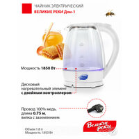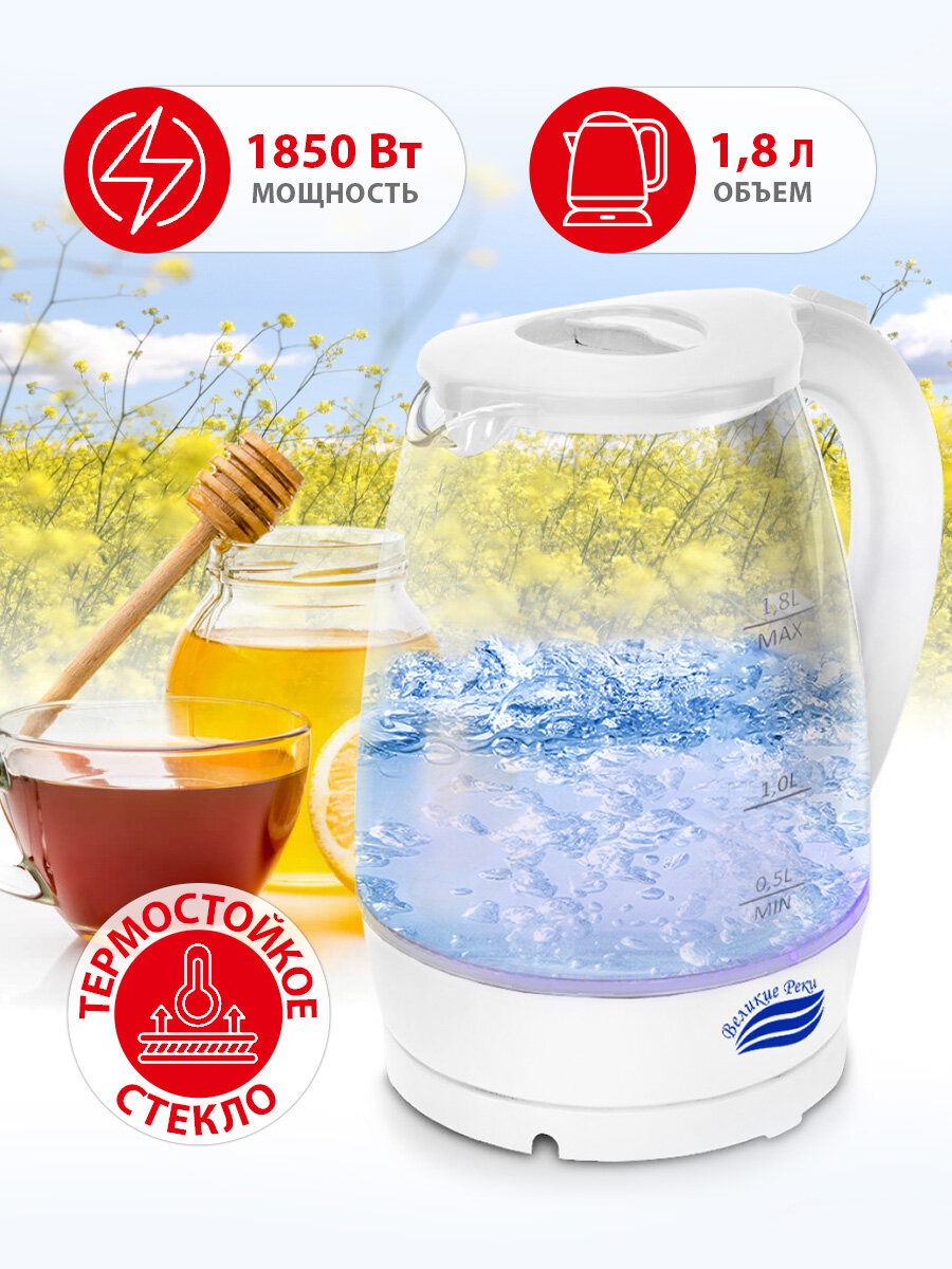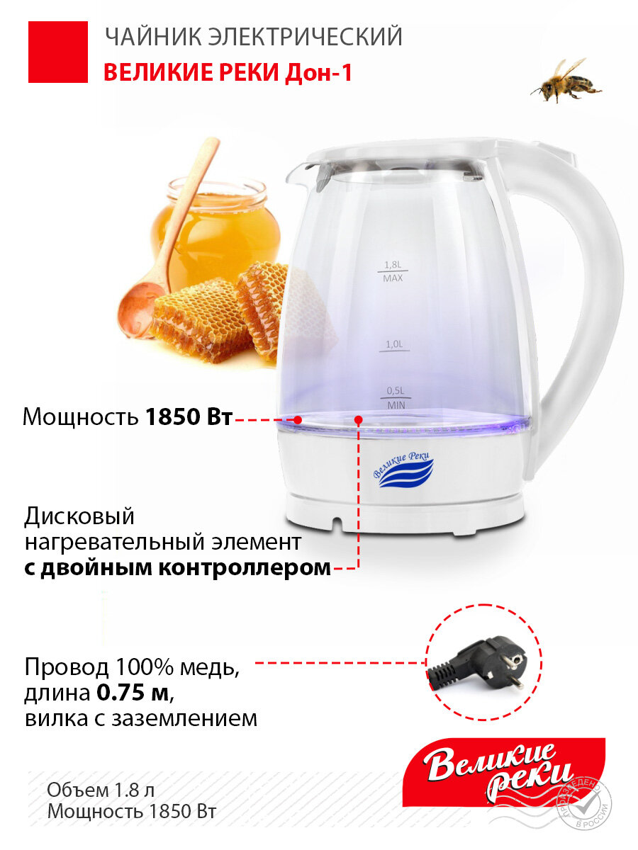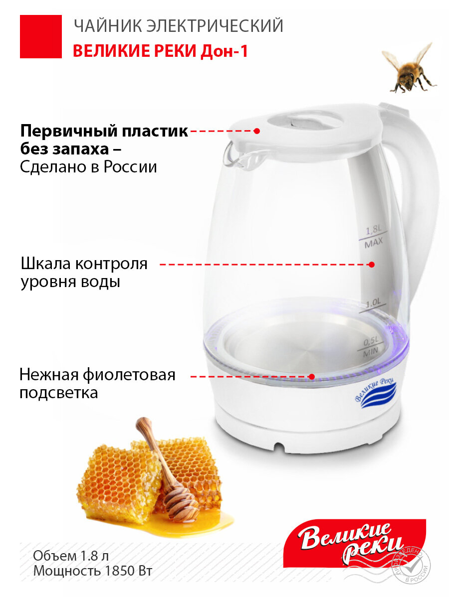 Купить Чайник электрический Великие Реки Дон-1 белый, 1,8 л, стекло, 1850 Вт с доставкой по всей России. Чайник электрический Великие Реки Дон-1 белый, 1,8 л, стекло, 1850 Вт: сравнение цен, характеристики, фото, актуальное наличие и цены.