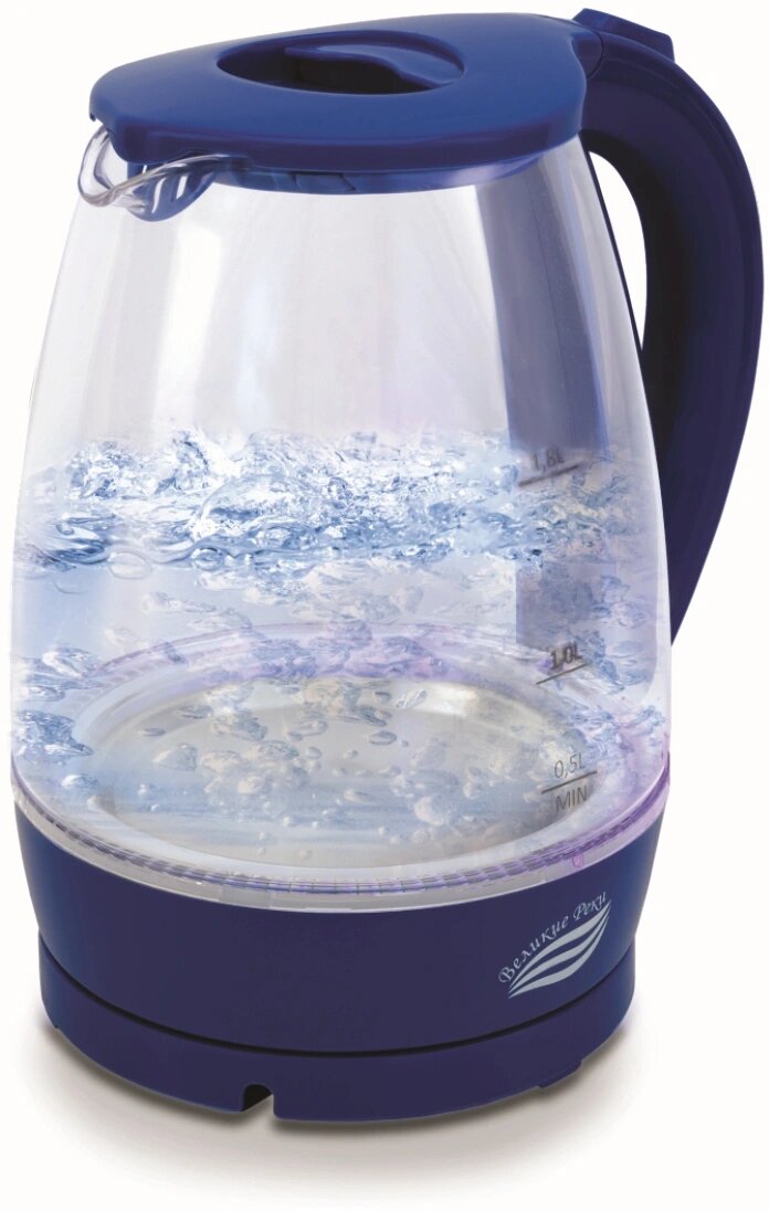 Купить Чайник электрический Великие реки Дон-1, 1850Вт, прозрачный и синий с доставкой по всей России.