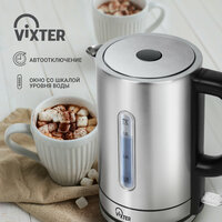 Купить Чайник электрический металлический тихий 1,7 л 2150 Вт VIXTER серебристый со шкалой уровня воды, шнур 0,7 м KT-8300 с доставкой по всей России.
