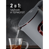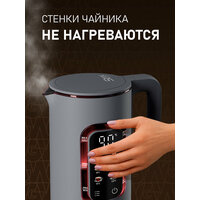 Вместительный и функциональный электрический чайник от Weissgauff, выполненный в тёмно-сером цвете, обладает объемом 1,5 литра, возможностью нагрева до требуемой температуры в диапазоне от 40 до 100 °C, а также 6 уровнями регулировки нагрева и автоподогрева воды!