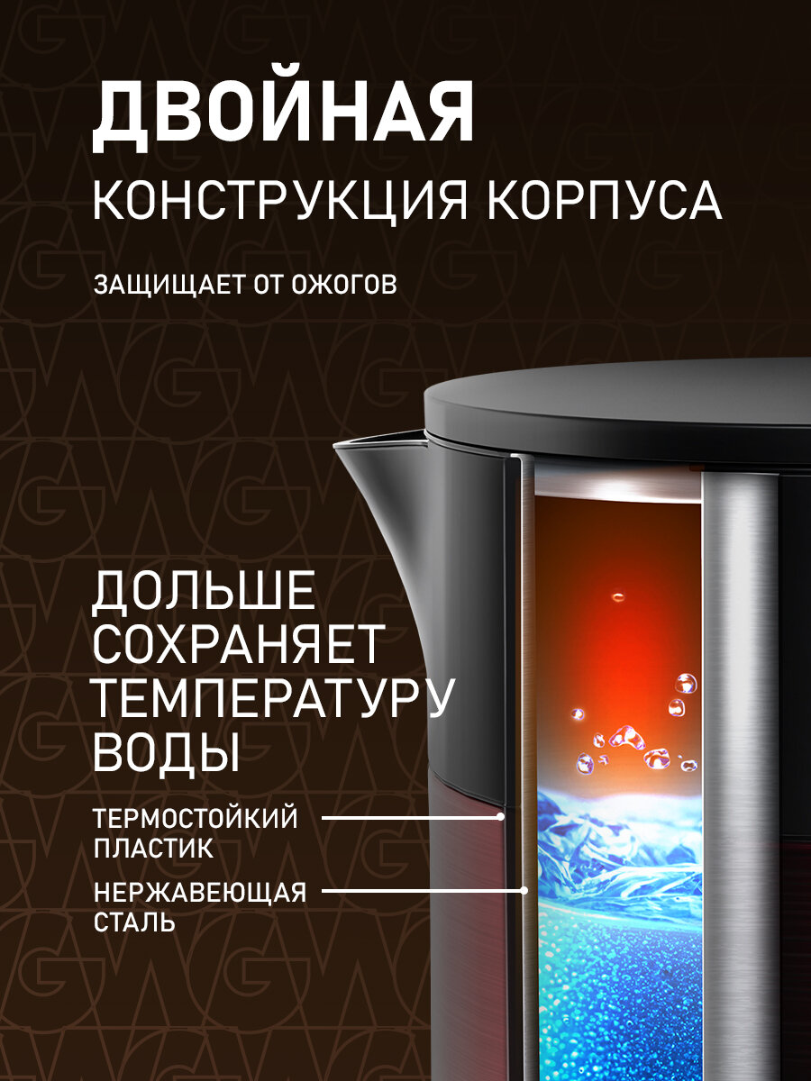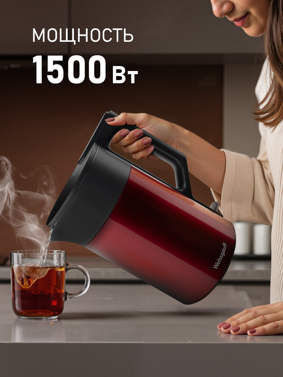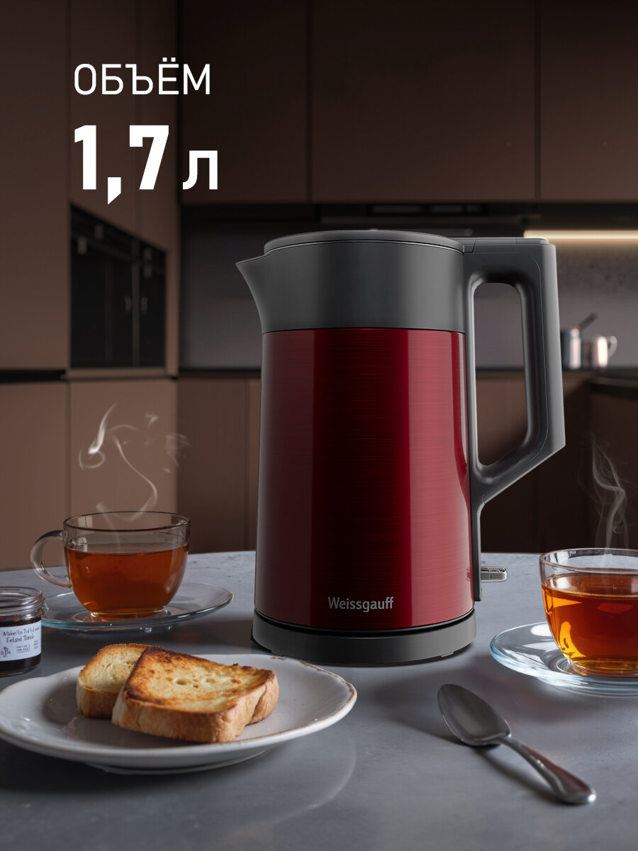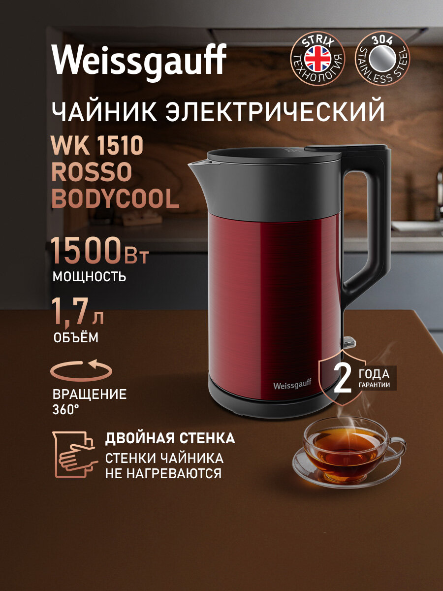 Чайник электрический Weissgauff WK 1510 Rosso BodyCool, Объем 1,7 литра, Двухстенная конструкция: сравнение цен, характеристики, фото, актуальное наличие и цены.