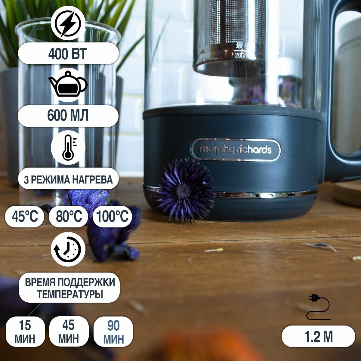 Чайник электрический заварочный фито с регулировкой температуры Morphy Richards Tea Maker, серый: сравнение цен, характеристики, фото, актуальное наличие и цены.