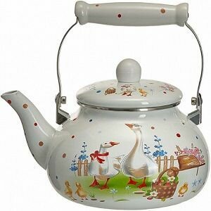 Объем 2,5 л Чайник эмалированный, без свистка, с керамической ручкой Трехслойное внутреннее и внешнее эмалевое покрытие, устойчивое к воздействию пищевых кислот Эргономичная подвижная керамическая ручка Зачерненное дно с повышенной термоотдачей Может быть использован на всех типах кухонных плит: электрических, газовых, керамических, индукционных Подходит для мытья в посудомоечной машине Упаковка: цветная коробка