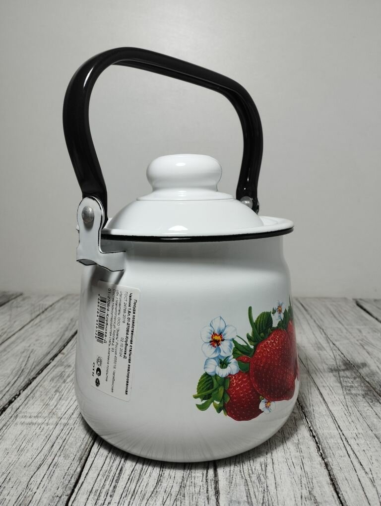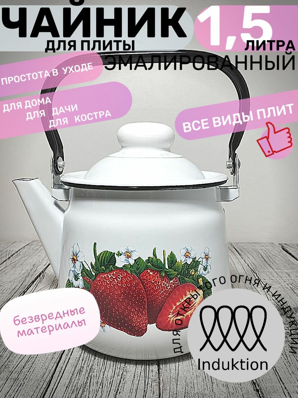Чайник эмалированный 1,5 литра белый клубника, подвижная ручка, все виды плит, индукция, пр-во Магнитогорск: сравнение цен, характеристики, фото, актуальное наличие и цены.