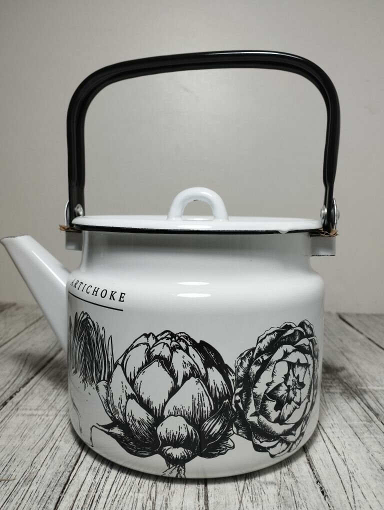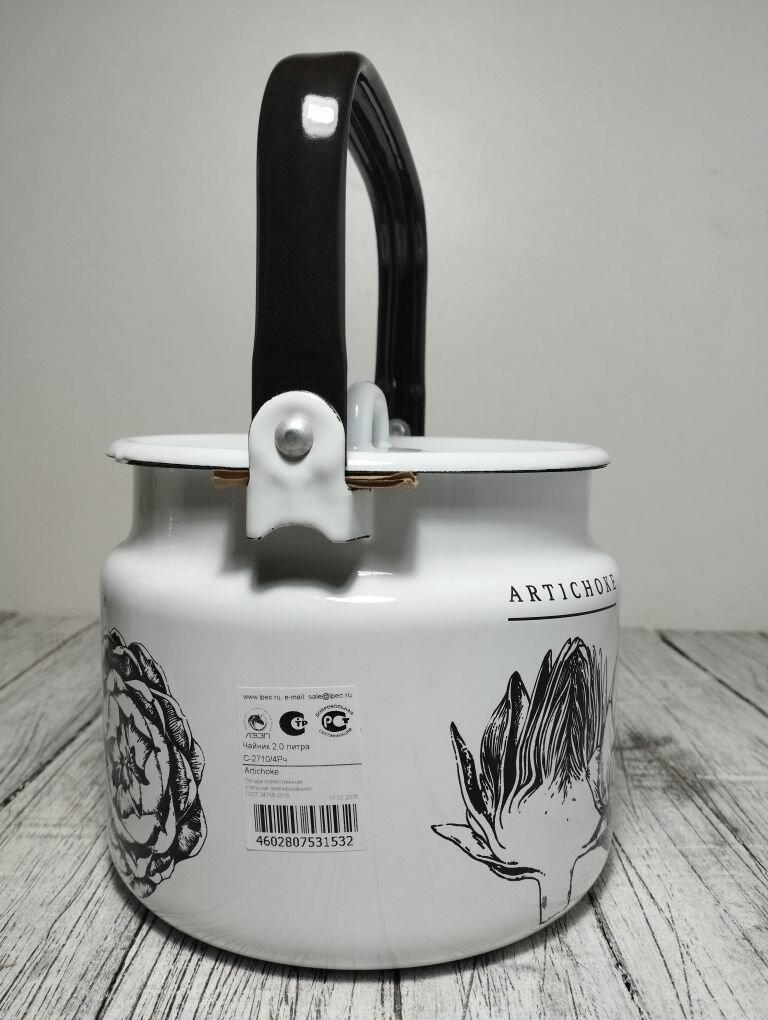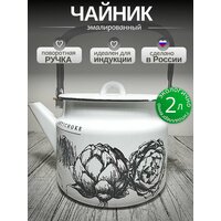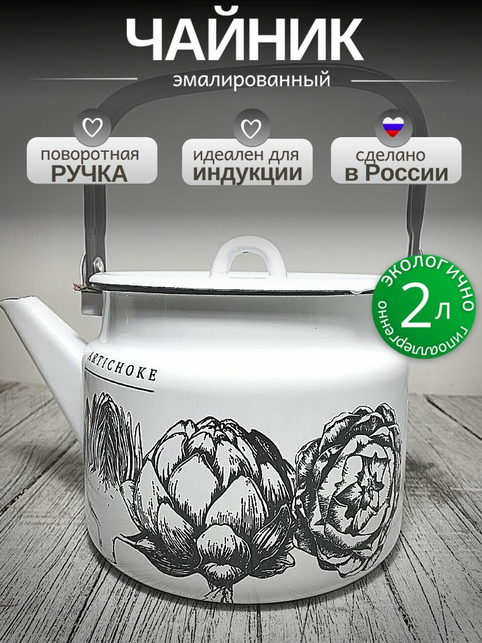 Купить Чайник эмалированный 2 литра Лысьва белый, артишок, подвижная ручка, все виды плит, индукция с доставкой по всей России.