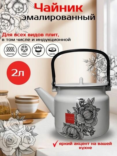 Чайник эмалированный 2 литра Лысьва белый, городской цветок, подвижная ручка, все виды плит, индукция: сравнение цен, характеристики, фото, актуальное наличие и цены.