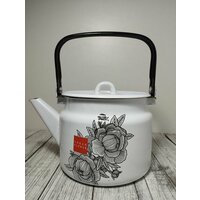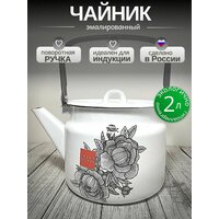 Купить Чайник эмалированный 2 литра Лысьва белый, городской цветок, подвижная ручка, все виды плит, индукция с доставкой по всей России.