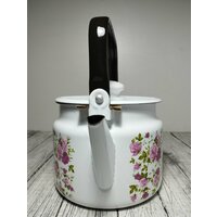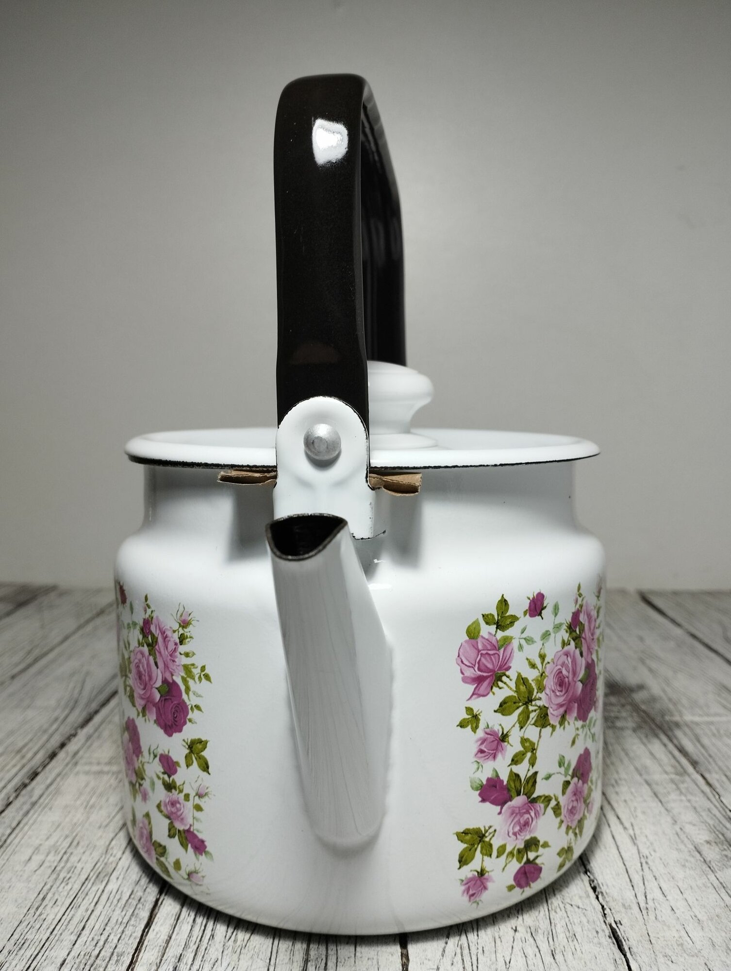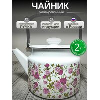 Купить Чайник эмалированный 2 литра Лысьва белый, китайская роза, подвижная ручка, все виды плит, индукция с доставкой по всей России.