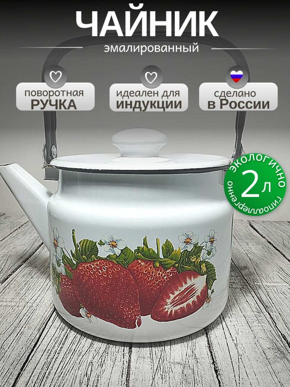 Чайник эмалированный 2 литра Лысьва белый, сочная клубника, подвижная ручка, все виды плит, индукция: сравнение цен, характеристики, фото, актуальное наличие и цены.