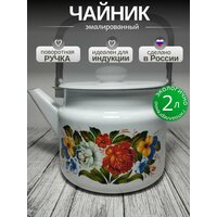 Купить Чайник эмалированный 2 литра Лысьва белый, татьяна, подвижная ручка, все виды плит, индукция с доставкой по всей России.