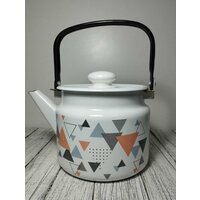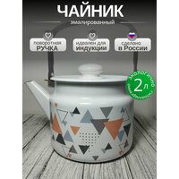 Купить Чайник эмалированный 2 литра Лысьва белый, треугольники, подвижная ручка, все виды плит, индукция с доставкой по всей России.