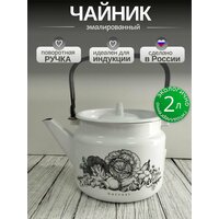 Купить Чайник эмалированный 2 литра Лысьва белый, урожай, подвижная ручка, все виды плит, индукция с доставкой по всей России.
