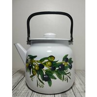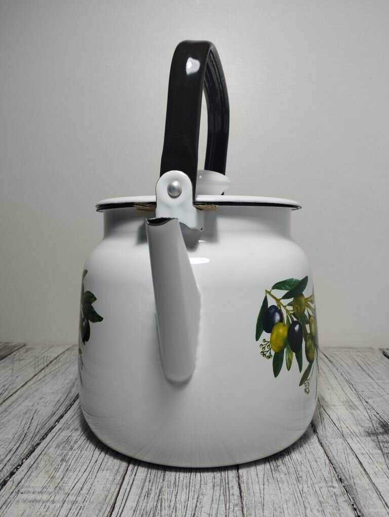 Купить Чайник эмалированный 3,5 литра Лысьва белый Оливковая ветвь, подвижная ручка, все виды плит, индукция с доставкой по всей России.