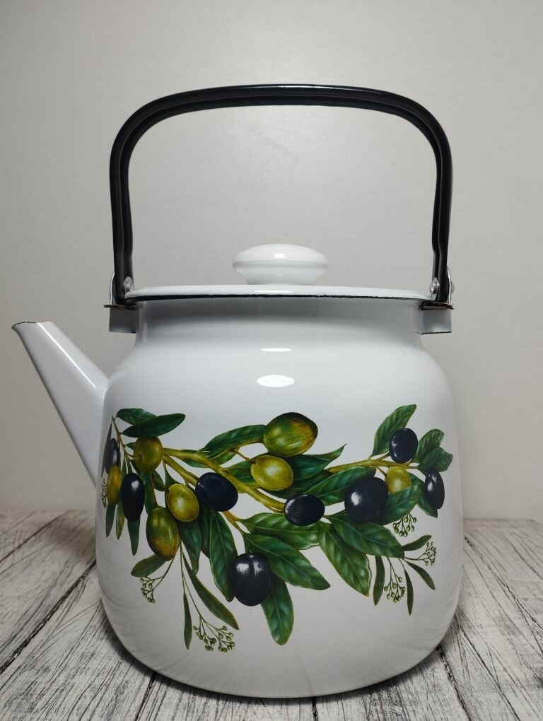 Чайник эмалированный 3,5 литра Лысьва белый Оливковая ветвь, подвижная ручка, все виды плит, индукция: сравнение цен, характеристики, фото, актуальное наличие и цены.
