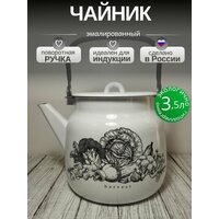 Купить Чайник эмалированный 3,5 литра Лысьва белый урожай, подвижная ручка, все виды плит, индукция с доставкой по всей России.