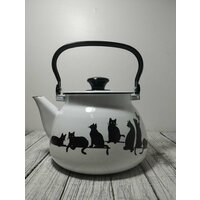 Купить Чайник эмалированный 3 литра КМЗ белый кошечки, подвижная ручка, все виды плит, индукция с доставкой по всей России.