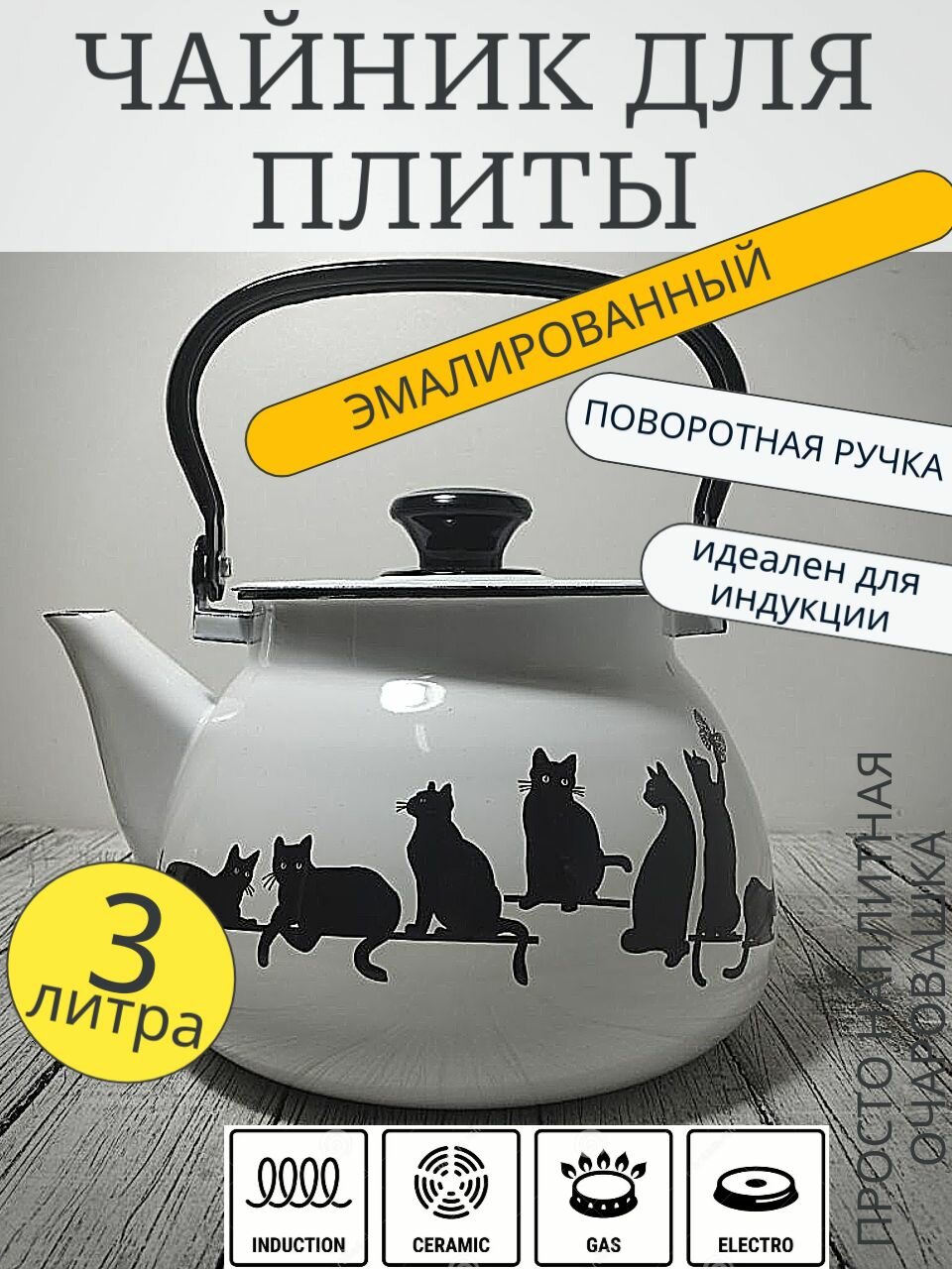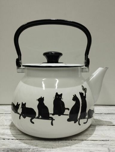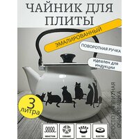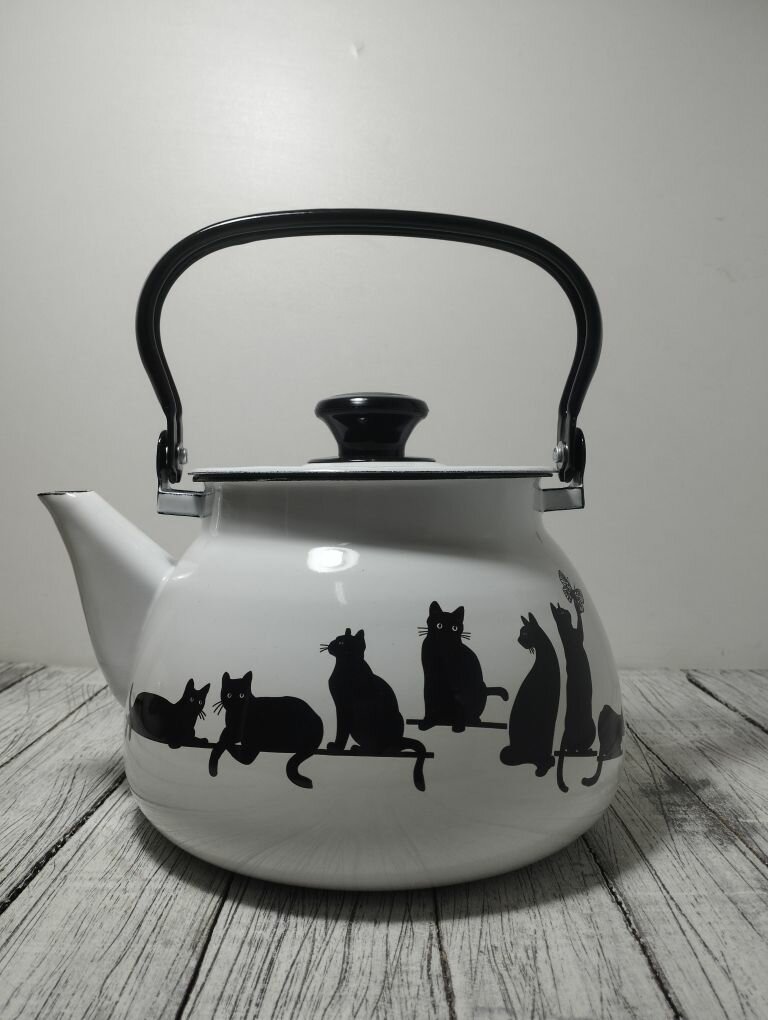 Чайник эмалированный 3 литра КМЗ белый кошечки, подвижная ручка, все виды плит, индукция: сравнение цен, характеристики, фото, актуальное наличие и цены.