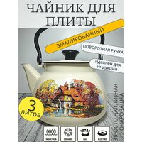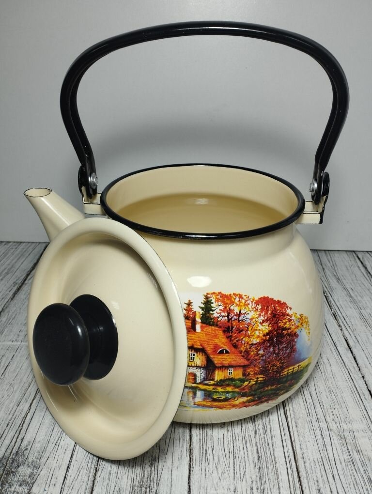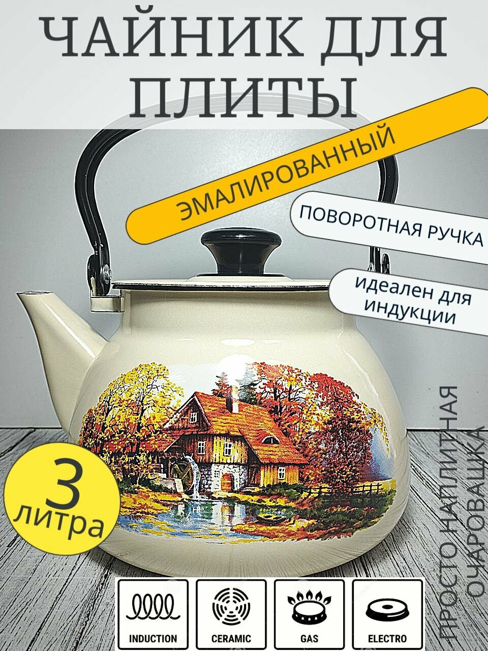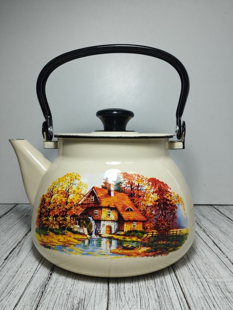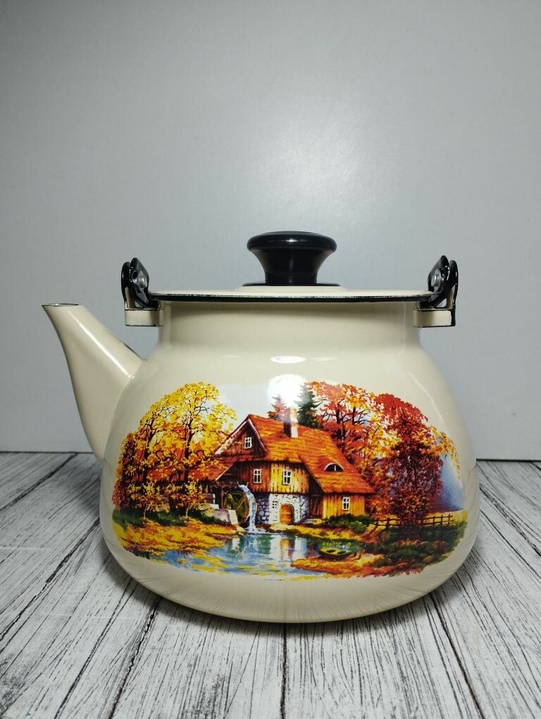 Чайник эмалированный 3 литра КМЗ слоновая кость старая мельница, подвижная ручка, все виды плит, индукция: сравнение цен, характеристики, фото, актуальное наличие и цены.