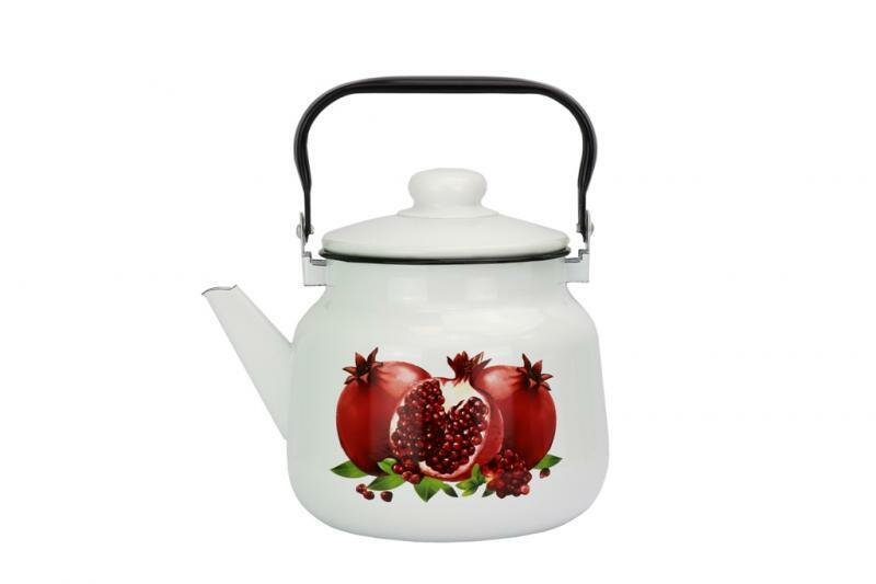 Купить Чайник эмалированный 3,5л с принтом «Гранаты», эмалированная сталь, удобная ручка, крышка с фиксатором с доставкой по всей России.