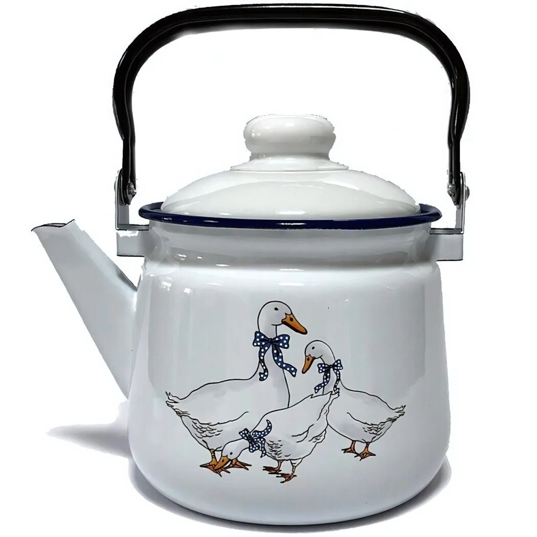 Купить Чайник эмалированный 2,5л «Гуси», белый с синей окантовкой, удобная ручка с доставкой по всей России. Чайник эмалированный 2,5л «Гуси», белый с синей окантовкой, удобная ручка: сравнение цен, характеристики, фото, актуальное наличие и цены.