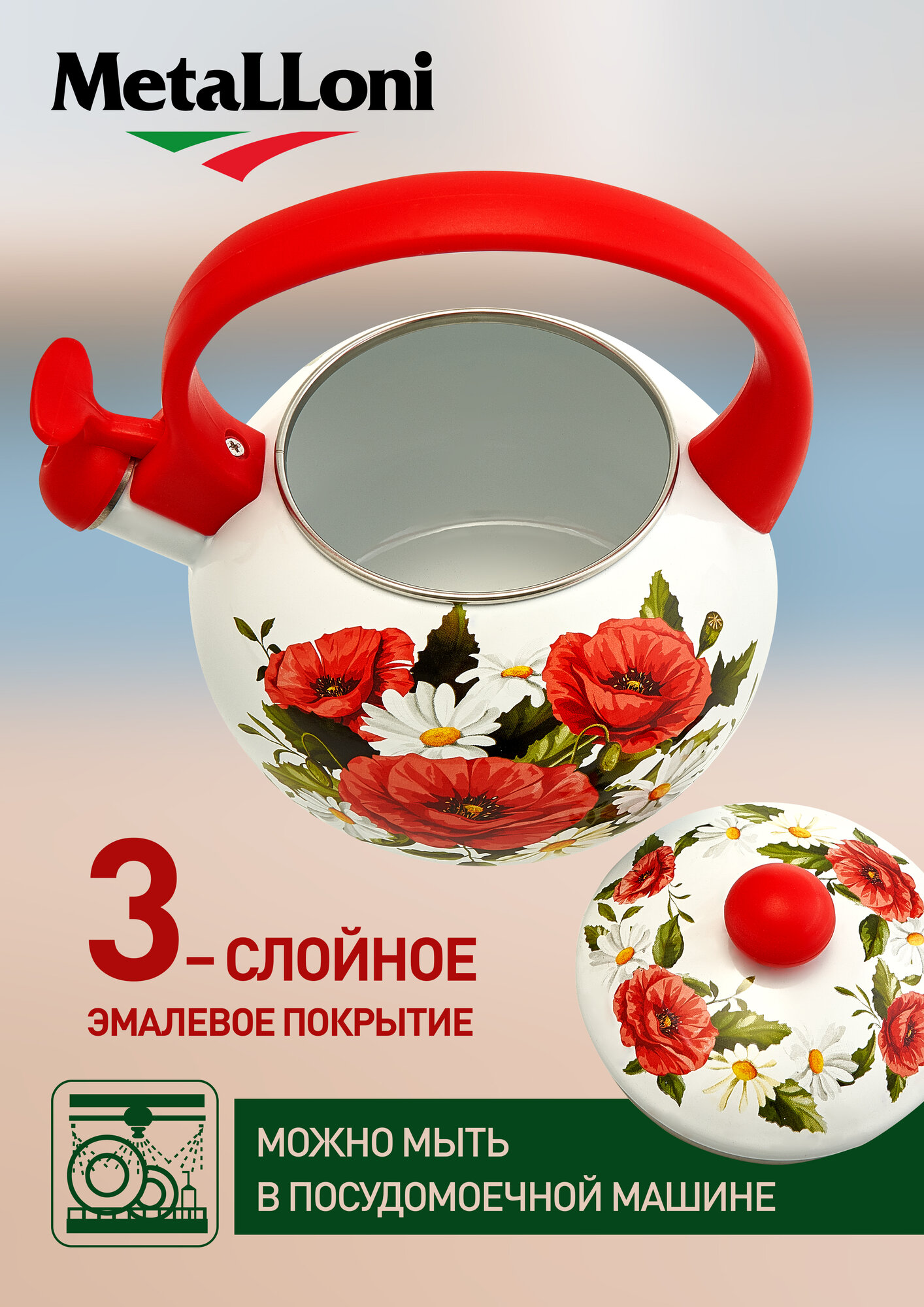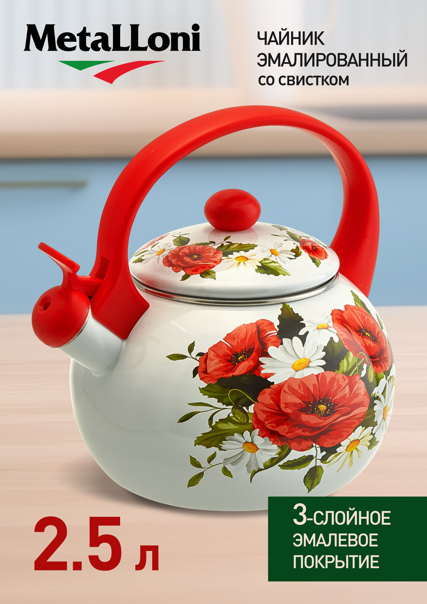 Купить Чайник со свистком Metalloni EM-1321 «Маки» эмалированный, 2.5 л с доставкой по всей России. Чайник со свистком Metalloni EM-1321 «Маки» эмалированный, 2.5 л: сравнение цен, характеристики, фото, актуальное наличие и цены.