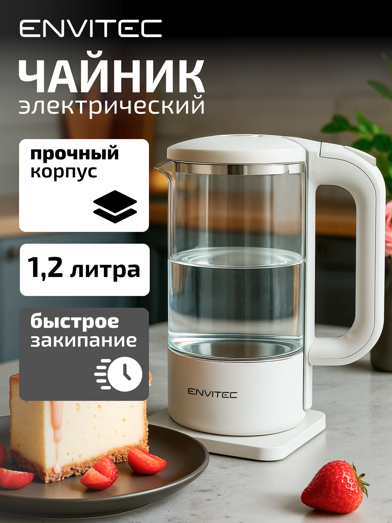 Купить Чайник Envitec E-Kettle Midi K17, белый, металлический, стеклянный, пластиковый, 1000 Вт с доставкой по всей России.