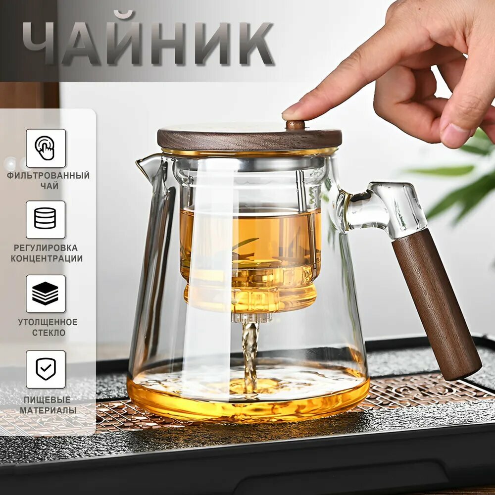 кнопка Гунфу, мытье в посудомоечной машине, с подогревом, ситечко, термоизолированная ручка, фильтр в носике