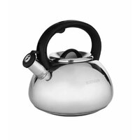 Характеристики: Со свистком; Зеркальная полировка; Неподвижная комбинированная бакелитовая ручка 3-х слойное термоаккумулирующее капсулированное дно (технология сендвич, алюминиевая пластина); Подходит для индукционных плит; Съемная крышка; Материал: нержавеющая сталь толщиной 0,6 мм; Объем: 3,0 л.