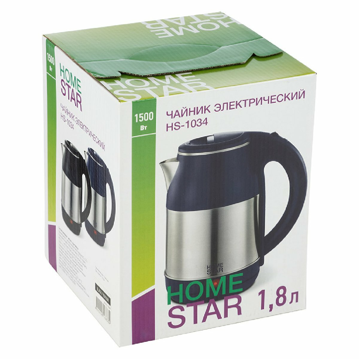 | Дополнительная информация | объем 1,8 л, корпус из нержавеющей стали, закрытый нагревательный элемент из нержавеющей стали, поворот на подставке 360°, защита от работы без воды, автоматический выключатель, световой индикатор работы, место для хранения шнура, мощность 1500 Вт, длина шнура 61 см |