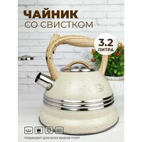 Чайник со свистком из нержавеющей стали 3,2 литра - идеальное решение для вас с терморисунком. Чайник для плиты имеет бакелитовую ручку с прорезиненным покрытием с рычагом для открывания носика. Эргономичная комбинированная фиксированная ручка с покрытием "soft-touch". Чайник для плиты газовой имеет удобный курковый механизм.
