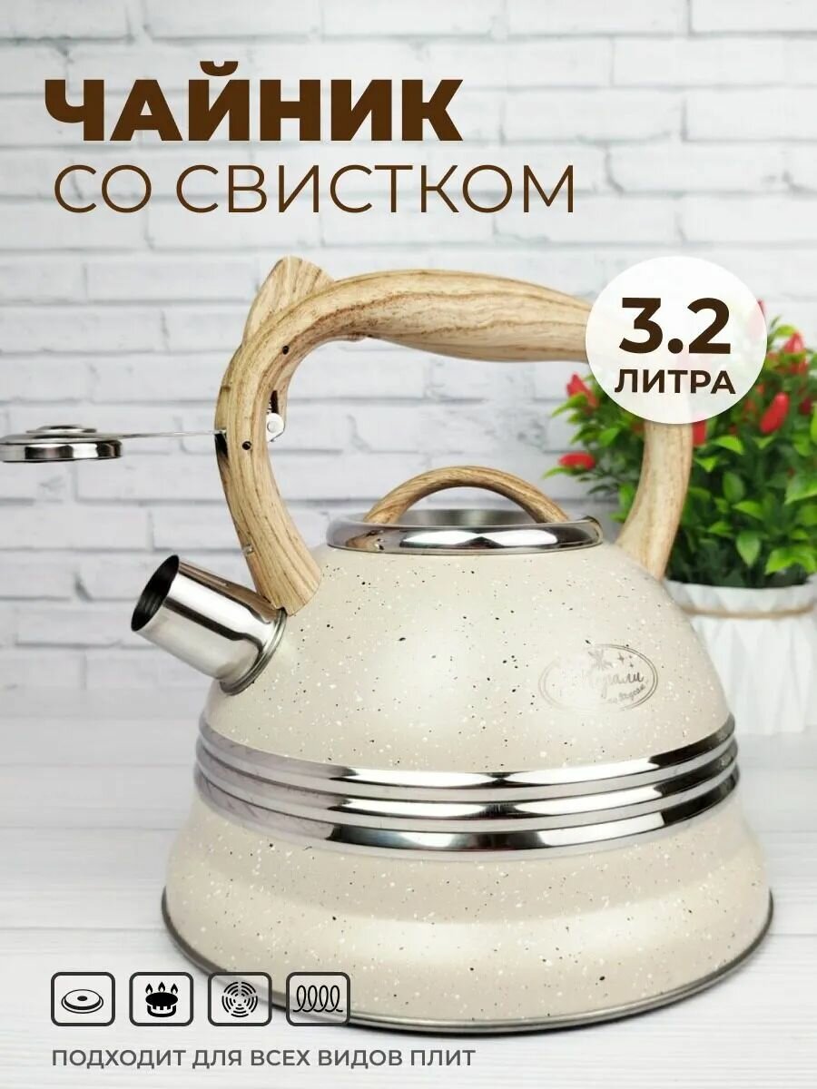 Чайник нержавеющей стали на плиту станет отличным подарком для себя и своим близким по любому поводу и празднику. Чайник для индукционной плиты со свистком идет в подарочной коробке с пластиковой ручкой.