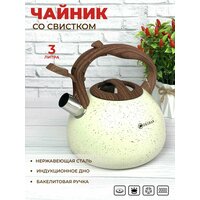 Чайник со свистком из нержавеющей стали 3 литра - идеальное решение для вас. Чайник для плиты имеет бакелитовую ручку с прорезиненным покрытием с рычагом для открывания носика. Эргономичная комбинированная фиксированная ручка с покрытием "soft-touch".