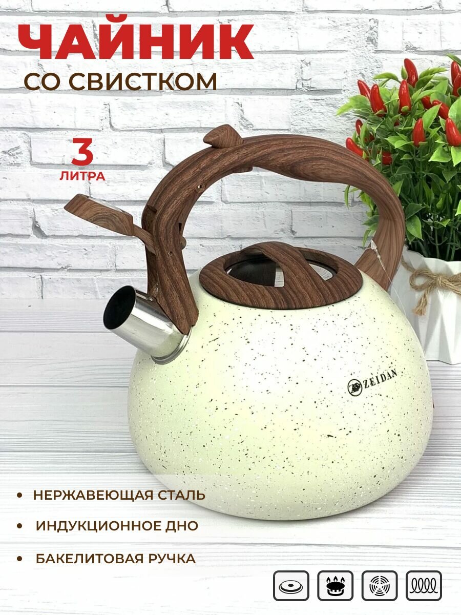 Чайник из нержавеющей стали со свистком Zeidan 3 литра для газовой электрической и индукционной плиты Zeidan.
