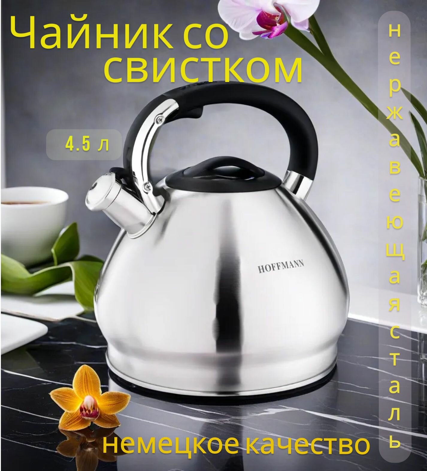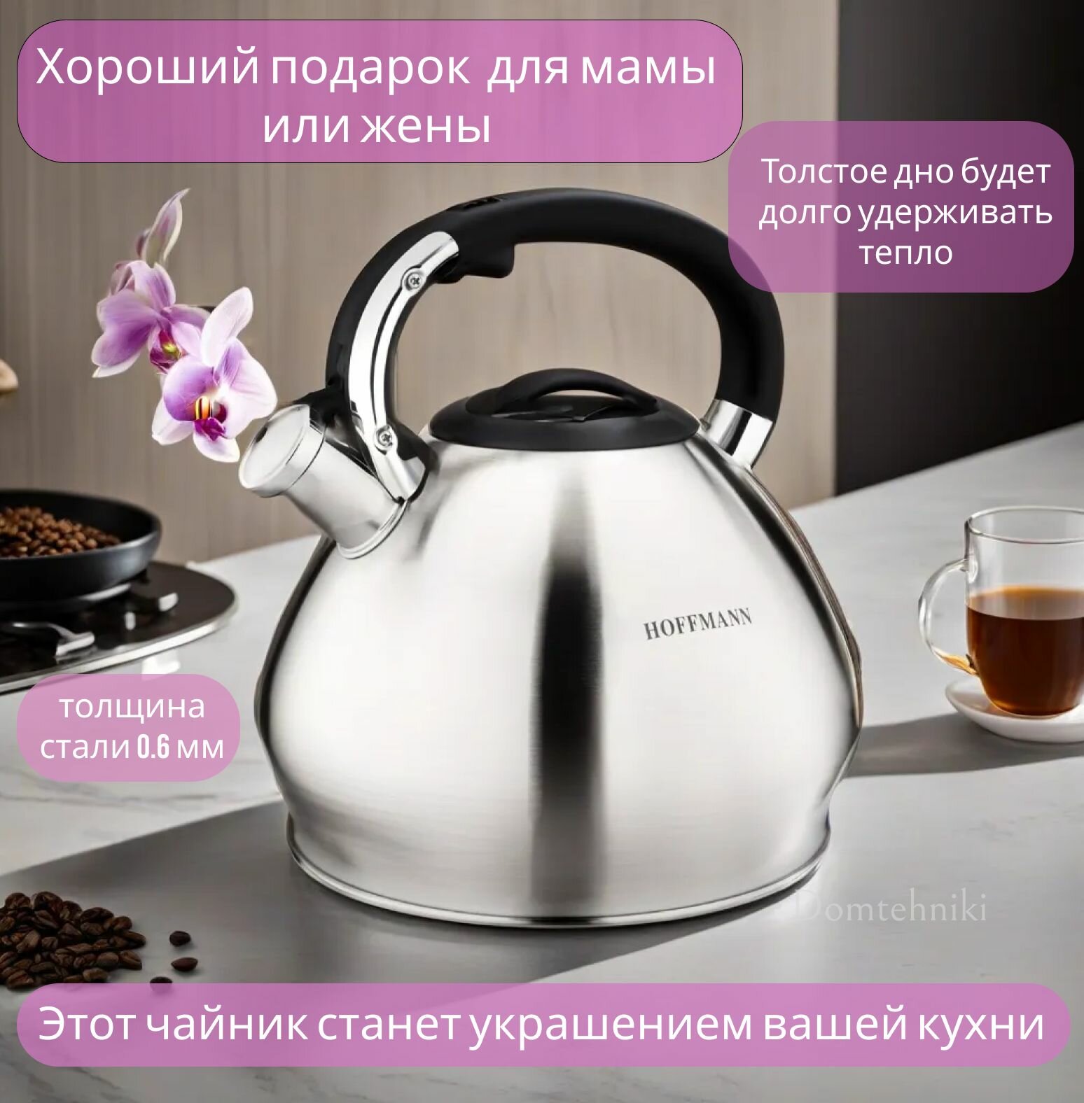 Металлический чайник из нержавейки со свистком и кнопкой открывания носика станет отличным подарком подруге, маме, бабушке, коллеге или любимой на день рождения, новоселье, годовщину, 8 марта.