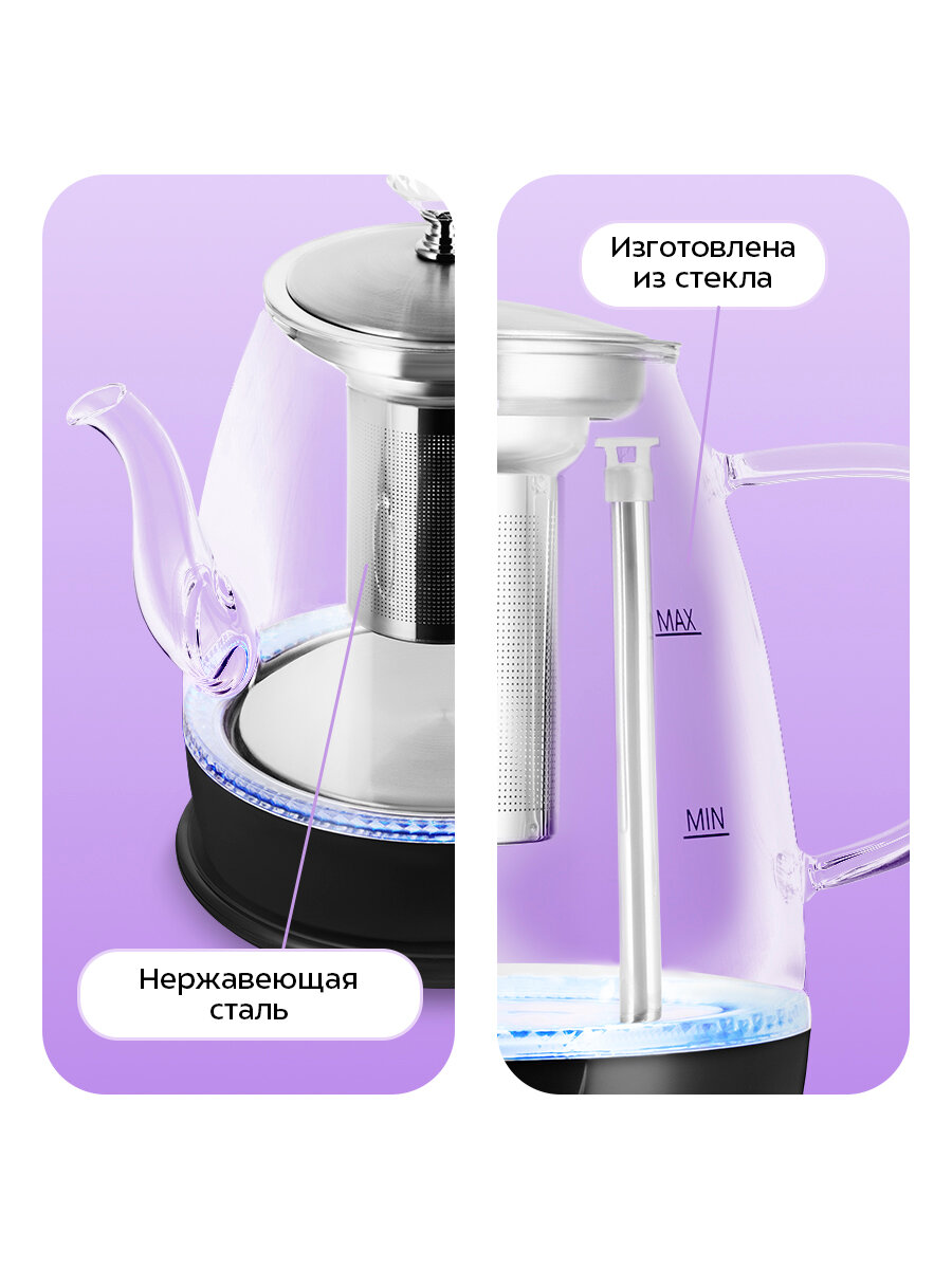 | Безопасность | блокировка включения без воды, отключение при снятии с подставки |