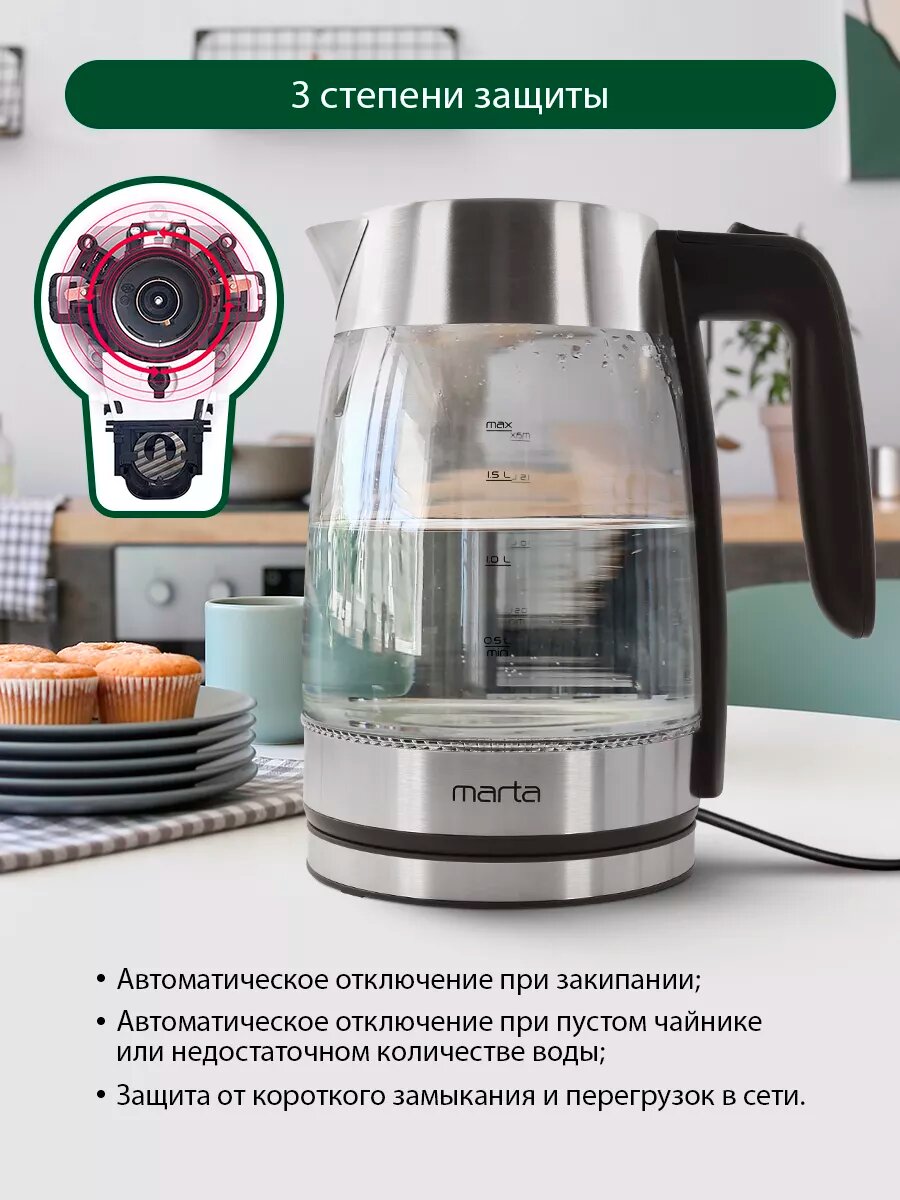 Электрический чайник MARTA MT-4553 черный жемчуг стеклянный, с подсветкой 1.8 л: сравнение цен, характеристики, фото, актуальное наличие и цены.