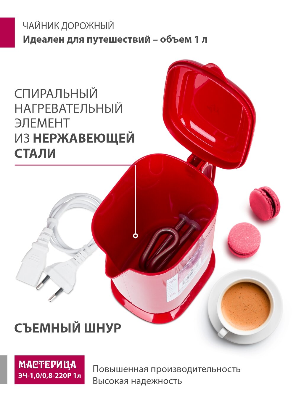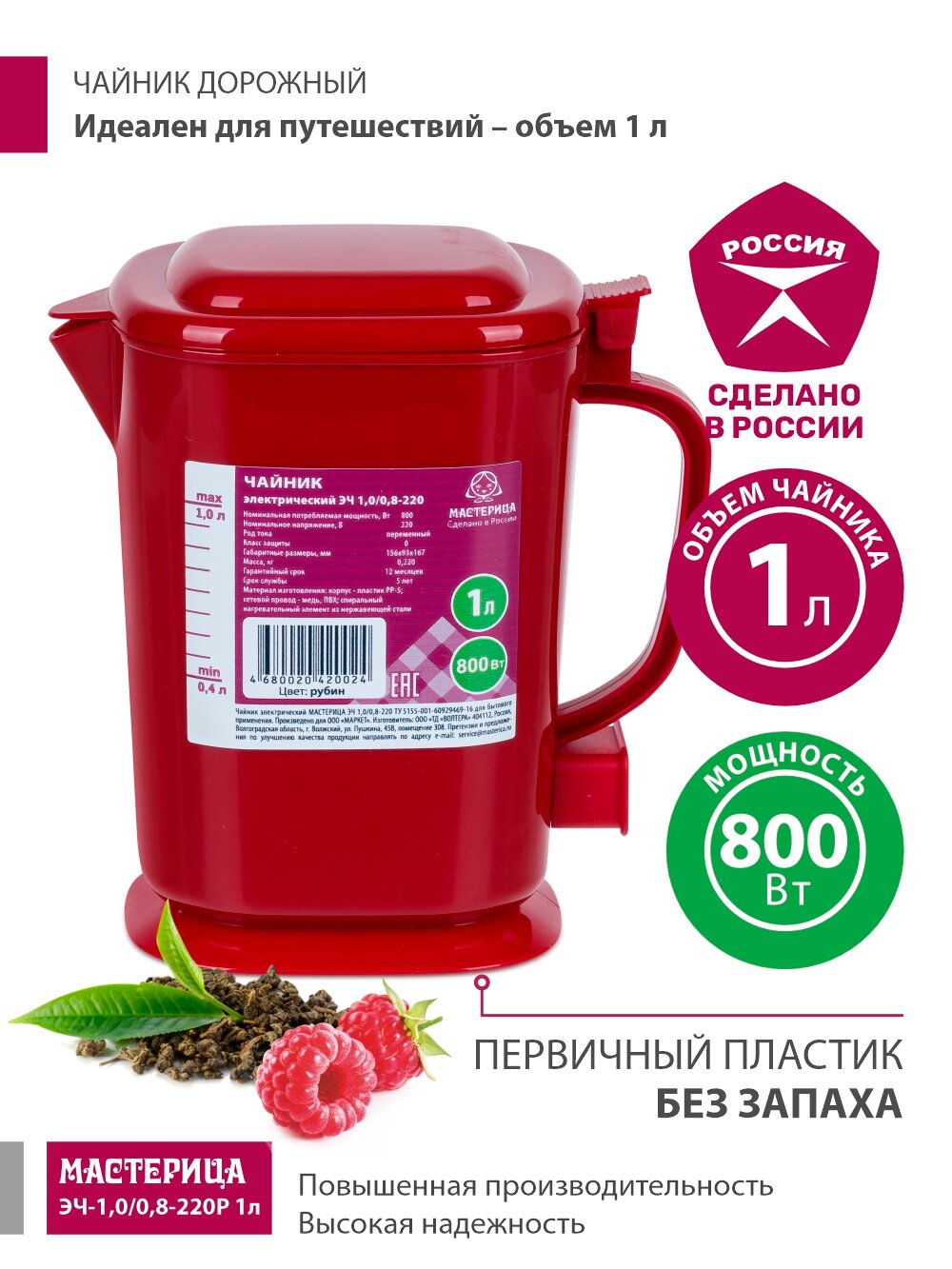 Купить Чайник электрический Мастерица ЭЧ-1,0/0,8-220Р 1л, пластик, рубин с доставкой по всей России. Чайник электрический Мастерица ЭЧ-1,0/0,8-220Р 1л, пластик, рубин: сравнение цен, характеристики, фото, актуальное наличие и цены.