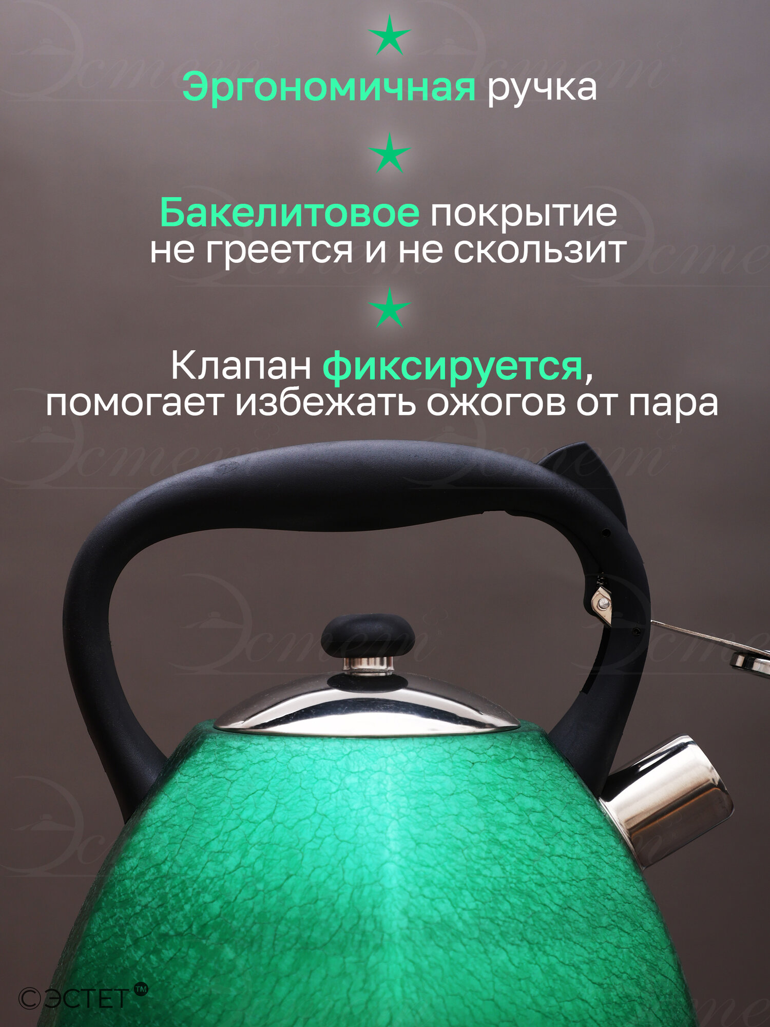 Купить Чайник для плиты со свистком 3 л, из нержавеющей стали, для всех видов в т. ч. для индукционных плит с доставкой по всей России.