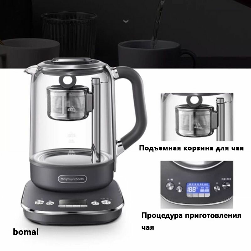 Чайник Morphy Richards MR6088, мультифункциональный, с подъемным механизмом для заварки, 1.7 л, стеклянный корпус, нержавеющая сталь, с таймером и подогревом: сравнение цен, характеристики, фото, актуальное наличие и цены.