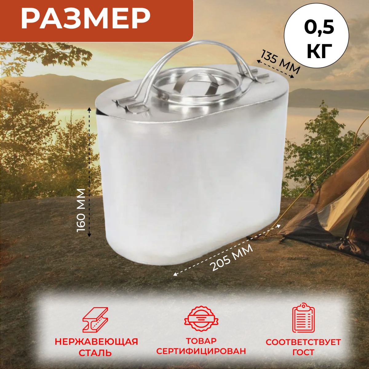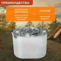Чайник из пищевой нержавеющей стали (AISI 304) надежен, легок и практичен, проверен многолетней историей. Чайник туристический имеет обтекаемую форму и хорошую теплопроводимость, обеспечивает равномерный и быстрый нагрев содержимого. Идеально подходит для приготовления пищи на открытом огне или горелке. В комплекте идет крышка с ручкой. Костровой чайник с крышкой – это незаменимая посуда для любителей охоты, рыбалки, кемпинга, туризма. Рекомендация: перед первым использованием чайника необходимо его промыть средством для мытья посуды. Предназначен для походов, рыбалки и отдыха на природе (пикника). Туристическая посуда сертифицирована. Швы сварные, сварка выполнена в аргоновой среде без применения электродов или флюсов. Толщина 0,5 мм.