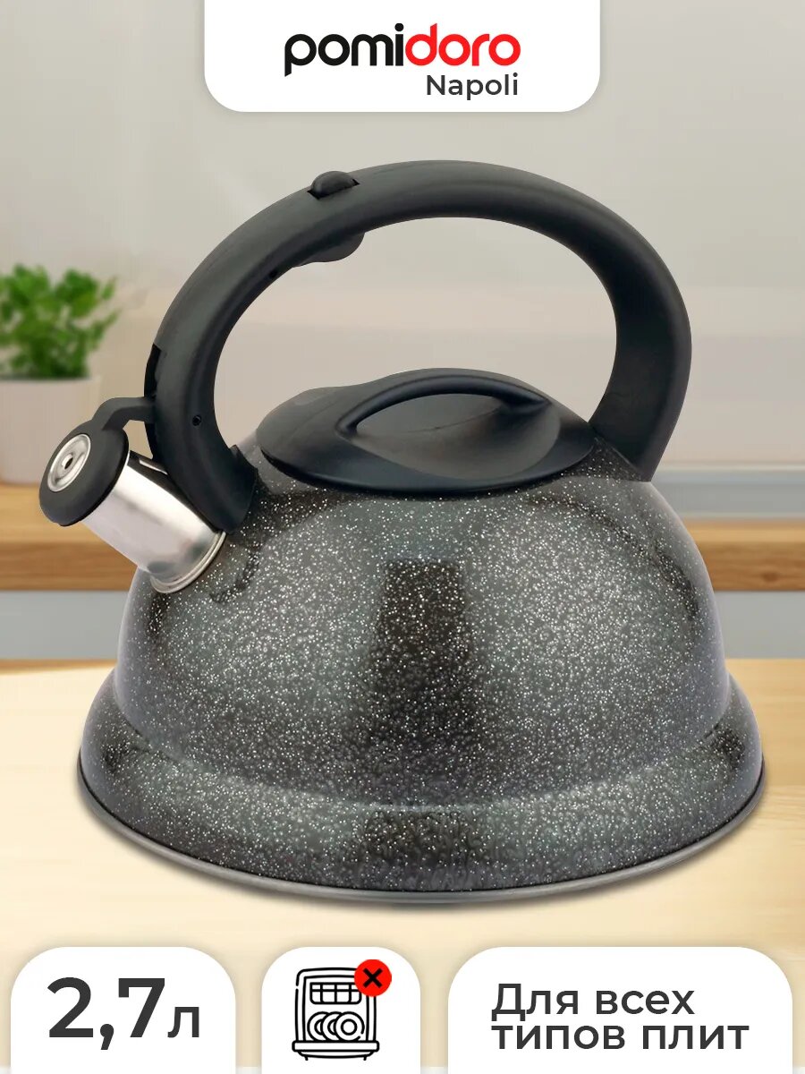 Чайник Pomi D’Oro Napoli P-650192, нержавеющая сталь, 2.7л, для всех плит, со свистком, черный: сравнение цен, характеристики, фото, актуальное наличие и цены.