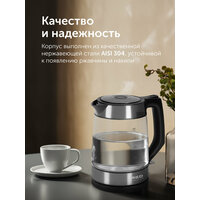 Электрочайник RED evolution RK-G20 — это стильное и компактное устройство для любителей горячих напитков. Прибор поместится даже на маленькой кухне за счет небольших размеров и специального отсека для электрошнура. Корпус выполнен из жаропрочного стекла, нержавеющей стали и пластика. Это современно смотрится и гарантирует, что чайник долго будет выглядеть, как новый.
