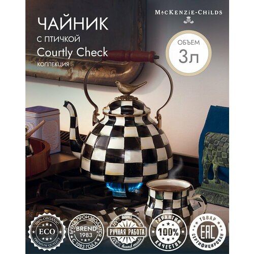 Чайника для плиты, 3 литра, птичка, MacKenzie-Childs, чайник эмалированный, Courtly Check, черно-белый, клетка, ручная роспись, бронза, премиум посуда: сравнение цен, характеристики, фото, актуальное наличие и цены.