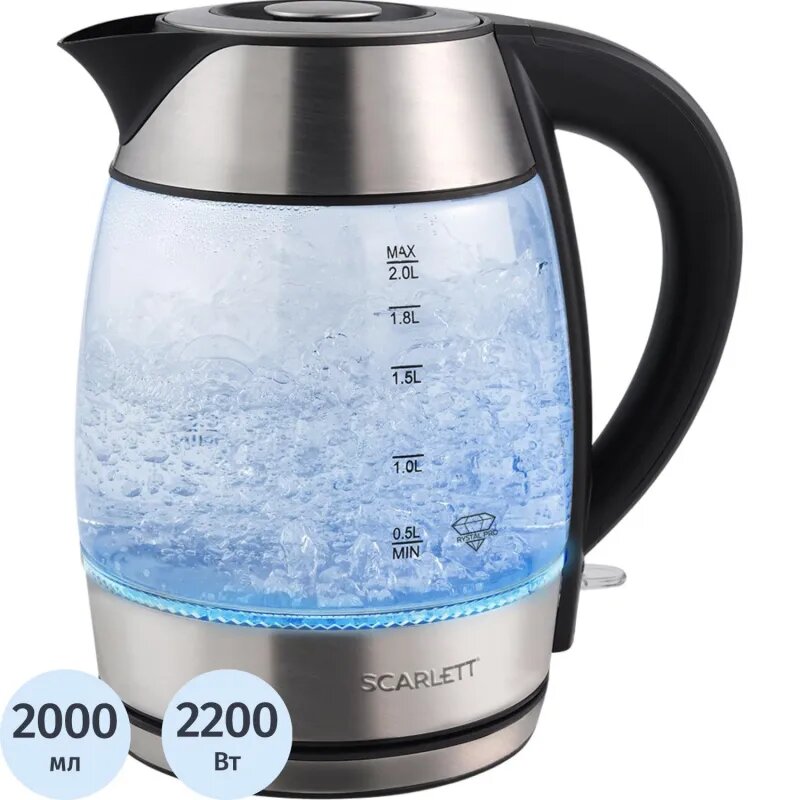 Чайник SCARLETT SC-EK27G13, электрический, 2200Вт, 2л, стекло, сталь/черный 2081856: сравнение цен, характеристики, фото, актуальное наличие и цены.
