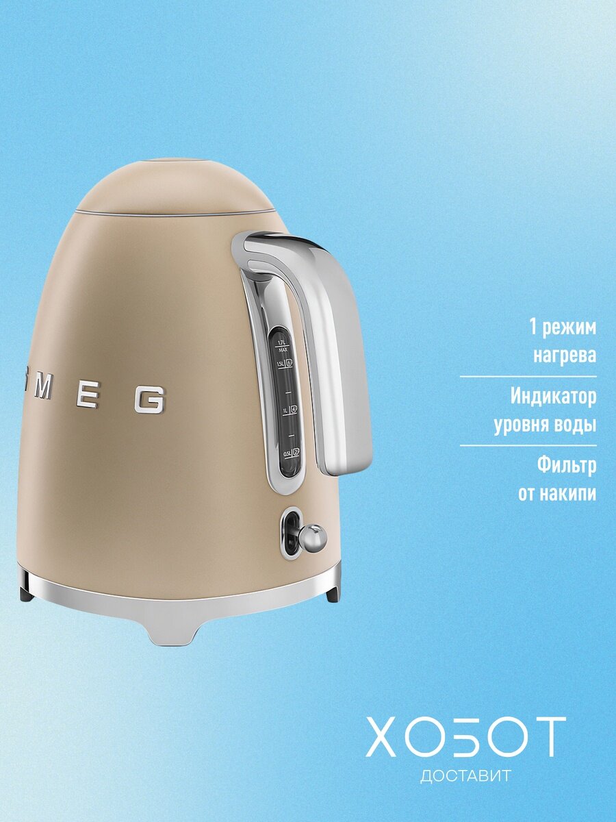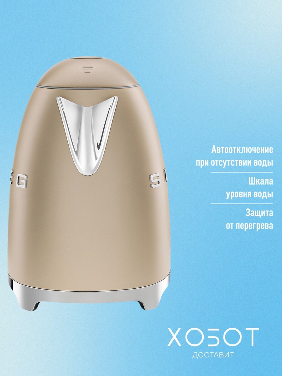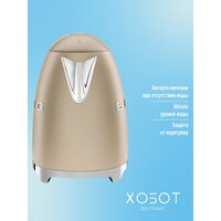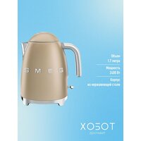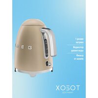 Обновленный вариант чайника SMEG KLF03CHMEU представлен в золотом матовом цвете в виде современного стильного изделия, обладающего рядом неоспоримых преимуществ. К примеру, наличие моющегося фильтра из нержавеющей стали, специальное отделение для хранения шнура, нескользящие ножки и автоматическое выключение при снятии с базы – все это является настоящими достоинствами данной модели. К тому же стоит заметить, что чайник SMEG KLF03CHMEU имеет привлекательный внешний вид и лаконичный, стильный дизайн, гармонично сочетающийся с кухней любого стиля и интерьера.