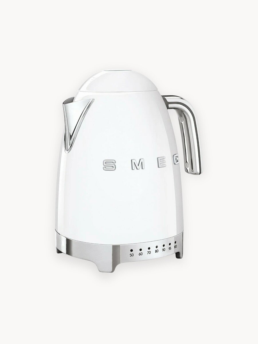Электрический чайник Smeg KLF04CREU представлен в белом цвете, что позволяет ему органично смотреться с остальными приборами серии «стиль 50-х». Кухонный девайс надежен и долговечен, поскольку его корпус выполнен из твердого сплава стали, которая не ржавеет. Устанавливается на вращающуюся базу, которая позволит Вам брать чайник с любого ракурса. Конструкция основания чайника, подразумевает отсек для провода, который можно туда убирать. Для устойчивости чайника, основание оснащено резиновыми ножками. Данная модель имеет уникальную функцию выбора температуры в интервале 50-100 градусов, которую Вы сможете отрегулировать самостоятельно, специальным рычагом, внизу конструкции. Шкала уровня воды, подсвеченная светодиодной лампочкой, позволяет Вам даже в темноте увидеть то, сколько жидкости в чайнике. Безопасность эксплуатации обеспечивается за счет автоматического выключения устройства без воды и при снятии с базы. Для того, чтобы нагревательный элемент прослужил дольше, предусмотрен съемный фильтр, защищающий от накипи. Функция поддержания тепла увеличивает комфорт использования, что позволяет сохранять жидкость горячей и заново не прибегать к ее нагреву или кипячению. 1,7-литровая колба модели выполнена из нержавеющей стали, как собственно и носик с фильтром от накипи. Нагревательный элемент на 2400 Вт поддерживает автоматическое выключение при достижении требуемой температуры или отсутствии воды. Чайник Смег имеет мощный нагревательный элемент 2400 Вт. Объем его резервуара составляет 1, 7 литра. Прибор имеет звуковой сигнал включения и выключения, поэтому Вы всегда будете знать о прекращении его работы. ХарактеристикиБелыйКорпус из нержавеющей сталиМягкое открывание крышкиОбъем: 1,7 лПоворотная база 360°Регулировка температуры 50/ 60/ 70/ 80/ 90/ 95/ 100°СФункция поддержания теплаАвтоматическое выключение при достижении заданной температурыАвтоматическое выключение при снятии с базыАвтоматическое отключение без водыОтделение для хранения шнура в базеСъемный моющийся фильтр из нержавеющей сталиНескользящие ножкиВнешние габариты (ВхШхГ): 275 х 226 х 171 ммтехнические характеристикиМощность: 2,4 кВтНапряжение: 220-240 ВЧастота тока: 50/60 ГцМы практически строго контролируем качество продукции, и каждая модель прошла строгий контроль качества и тестирование производительности. Наша цель - сделать так, чтобы наши продукты приносили больше удобства и удовольствия в вашу жизнь.