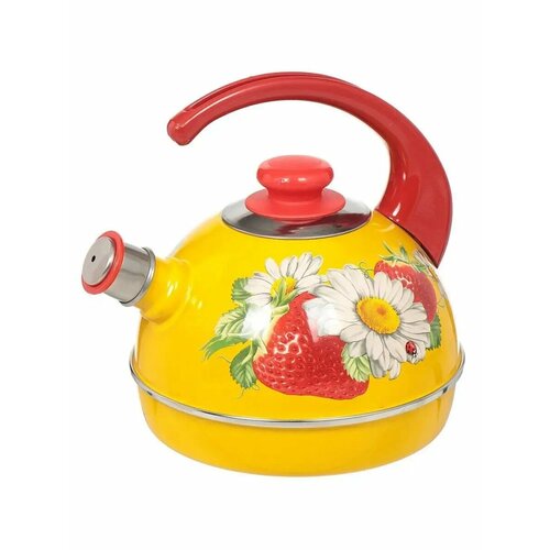 Чайник эмалированный со свистком. Объем: 2,5 л. Подходит для всех видов плит: газовые, индукционные, электрические, стекло-керамические. Внешнее трехслойное эмалевое покрытие не вступает во взаимодействие с пищевыми продуктами, защищает сталь от коррозии, придает посуде гладкую стекловидную поверхность, устойчива к высоким температурам и надежно защищает от кислот и щелочей. Материал чайника - высококачественная нержавеющая сталь. Изделие произведено в России. Свисток съемный из нержавеющей стали. Крышка плотно прилегает к краю, позволяющая долго не остывать воде. Подходит для мытья в посудомоечной машине. Приготовьте чай, кофе, какао и другие напитки, наслаждаясь великолепным дизайном чайника, который впишится в любой интерьер.