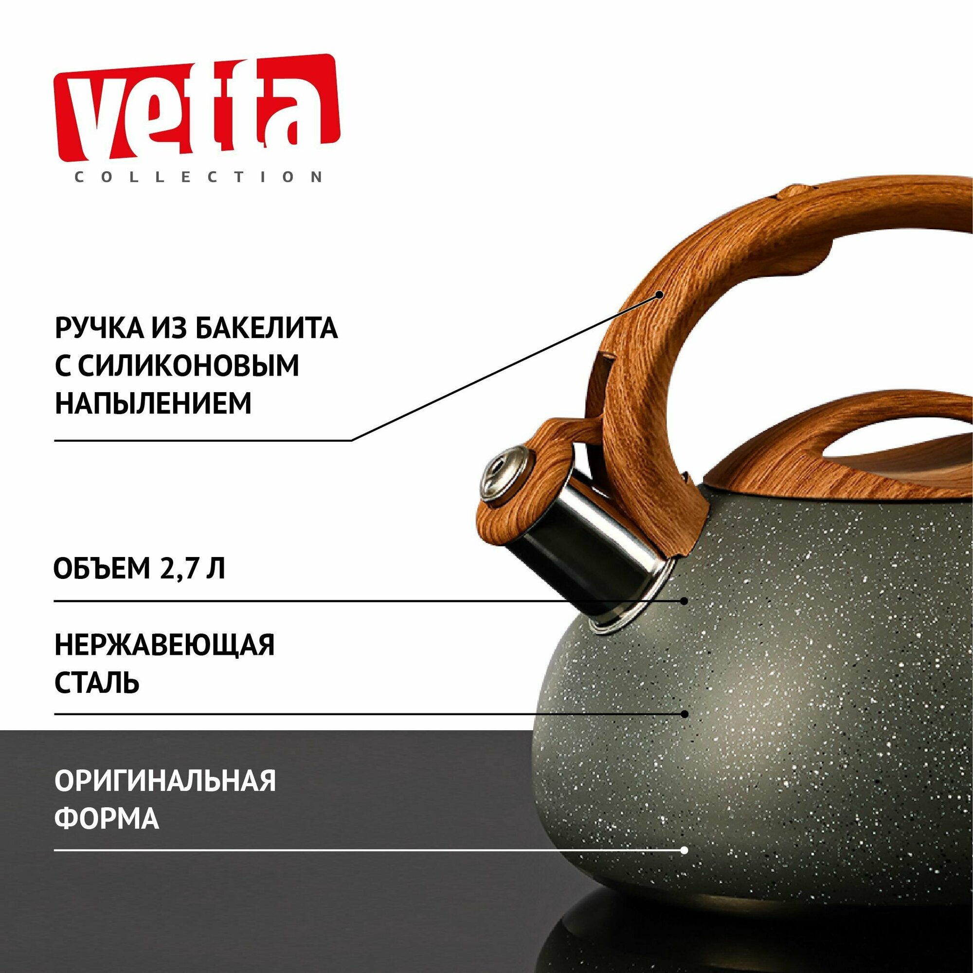 Чайник со свистком 2,7 л для плиты Vetta «Гранит», нержавеющая сталь, индукция, серый: сравнение цен, характеристики, фото, актуальное наличие и цены.
