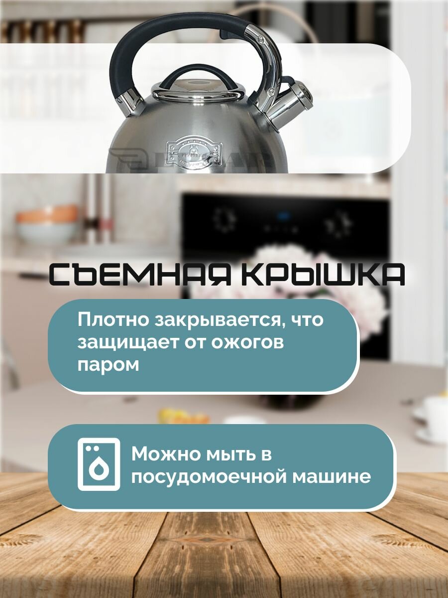 | Особенности | индукционное дно, со свистком, термоизолированная ручка |